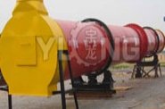 3、物料从给料端喂入筒体后由导料螺旋推向扬料板,由于机体的倾斜和回转,物料不断沿周向被扬起并抛散,同时在筒内做纵向运动;高温介质(热烟气)经由火筒、尾管折向外层烟道,物料与高温介质通过热传导和辐射方式进行热量交换,使物料中所含水分被加热蒸发,从而得以烘干。