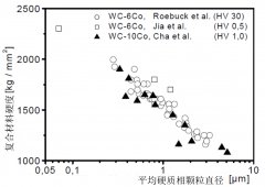 现代复合粉体材料的研发需要在实验室将复合的各类材料进行研磨处理(下图表明随着颗粒粒径的减小, 复合材料的硬度增加), 再进行混合复合或活化.