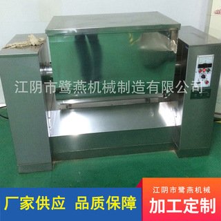 本机为全不锈钢卧式槽型混合机,在制药,化工,食品中中用于混合粉状或糊状的物料。该机通过机械转动,使S式搅拌浆旋转,推动物料往复翻动,均匀混合,操作时采用电气控制,可设定混合时间,到时自动停机,从而提高每批物料的混合质量。