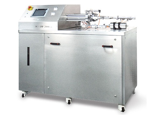 物料流经单向阀后,在高压腔泵里加压。通过微米级的喷嘴,以亚音速撞击在乳化腔上,同时通过强烈的空穴,剪切效应,得到足够小而均一的粒径分布。