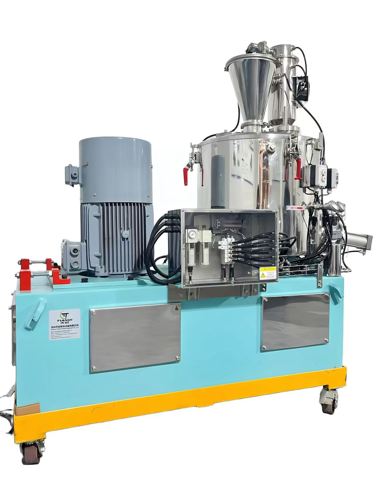 天启HM100高速混合机是苏州天启粉体设备有限公司专为实验室研发、小规模试产设计的模块化高速混合设备,采用涡轮桨叶式结构,支持粉体与粉体、粉体与液体的高效混合。该产品通过ISO9001质量认证,广泛应用于锂电池材料、化工、医药、塑料等领域的配方验证与工艺优化。