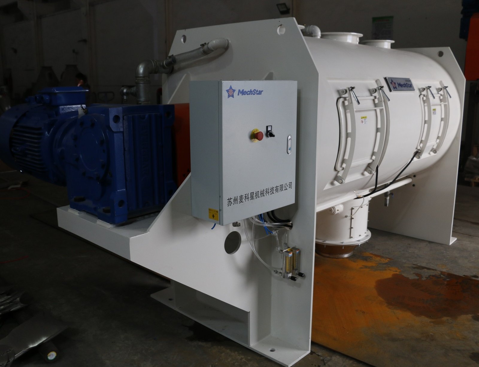本机装备有犁刀和高速飞刀。犁刀起到物料分散和混合的作用而飞刀可以将结块打碎。 它适合于粉料、粒料和液体物料的混合,特别是容易结块的物料的混合。