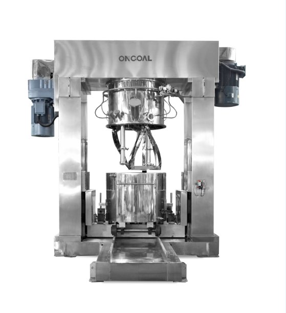 双行星搅拌机又称为双行星动力混合机,它主要由主机、密封盖、搅拌桶、搅拌浆和分散组件组成。搅拌机的分散盘搅拌浆实现既公转,又自转的行星运动,其速度可通过变频器进行调整。使物料做复杂运动,受到强烈分散和挤压,保证物料充分分散和混合。