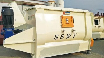 SWZ4000混合机是目前大型干粉砂浆生产线普遍使用的混合机,其主要特点是搅拌速度快,混合质量高。每次混合物料高达 2.5 立方(根据含砂比重来确定容积系数。容积系数 0.4-0.7)。