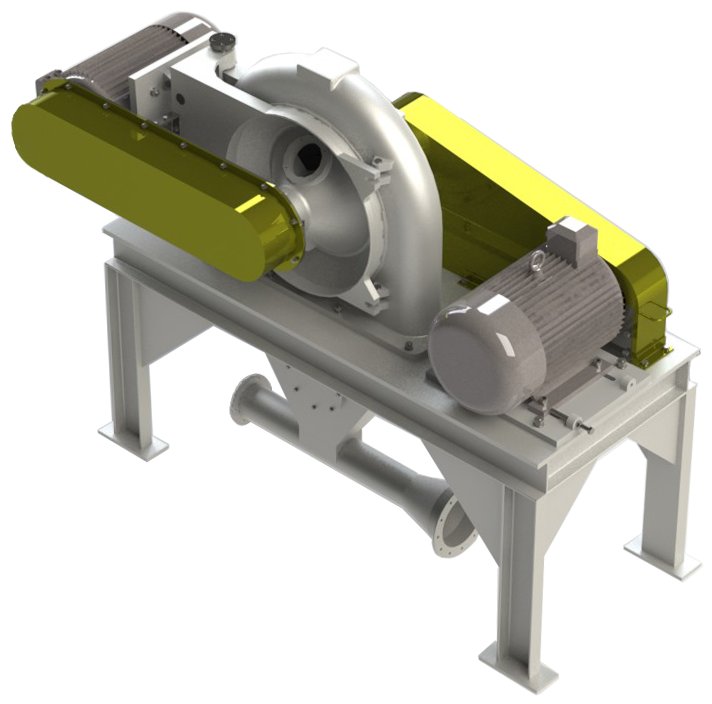 本机组对粉体物料的表面活化改性处理,是将经过温控加药系统精确计量过的表面改性剂通过特制的雾化喷嘴被送至雾化室,让表面改性剂与干燥的粉体物料在雾化室进行混合。若使用固体状改性剂,改性剂会先在温控加药系统内被加热融化至液态。表面改性剂与被改性的粉体物料先进入雾化室进行混合,接着自动连续地进入钉盘内,受到盘内不同方向的气流冲击,高速旋转的转子让特殊设计的钉盘内形成涡旋二相流,让物料和改性剂被充分打散。依靠转子高速旋转与粉体物料的冲击、剪切和摩擦作用所产生的热量,粉体和改性剂在盘内迅速升温,达到改性需要的温度,也因此让两者得以充分接触、混合,改性剂能迅速、均匀地与粉体颗粒表面作用,包覆于颗粒表面,完成对粉体的表面包覆改性。接着然后改性后的粉体成品进入后端的气流分级机系统进行分选,合格的细粉将会被选到旁边的旋风集粉器进行冷却和收集。