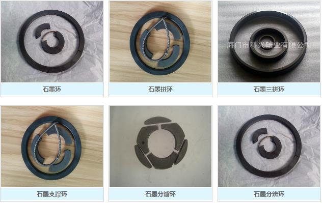 产品有:石墨拼环、石墨三拼环、石墨三辨环、石墨支撑环、石墨分瓣环、石墨分辨环、石墨摩擦环、石墨密封环、石墨自密封环、高硬度石墨环、柔性石墨填料环、耐高温浸锑石墨环等石墨制品。