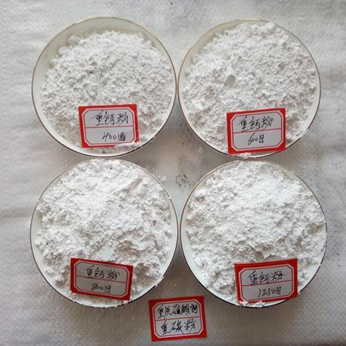 重质碳酸钙:简称重钙,为无色、无味的白色粉末,几乎不溶于水,不溶于醇。遇稀醋酸、稀盐酸、稀硝酸发生泡沸,并溶解。加热到898℃开始分解为氧化钙和二氧化碳。重质碳酸钙是由天然碳酸盐矿物如方解石、大理石、石灰石磨碎而成。是常用的粉状无机填料,具有化学纯度高、惰性大、不易化学反应、热稳定性好、在400℃以下不会分解、白度高、吸油率低、折光率低、质软、干燥、不含结晶水、硬度低磨耗值小、无毒、无味、无臭、分散性好等优点。