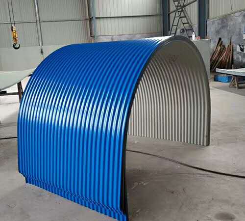 防雨罩的样式: 防雨罩有固定式、开启式和带观察窗口式,可以清楚的看到货物在传送过程中及传送带运行是否正常,更有跑偏罩,为设有跑偏开关的输送机起到防雨、防尘等作用。 防雨罩的颜色主要种类为海蓝、白灰、红色等。 防雨罩的主要程序: 输送机防雨罩的生产需要多个工序完成,包括选板,上料,压型,剪板,压弧,调高,包装等。 防雨罩的安装及注意事项 作为固定输送机罩的骨架为连接角钢或Z型钢,其长度与输送机罩安装长度相等。将连接角钢或Z型钢焊接在输送机架的两侧槽钢或小角钢上。如需安装支撑角钢的,先将支撑角钢焊接在机架两侧,再把连接角钢或Z型钢焊接在支撑角钢上。 四种形式的输送机防雨罩中,固定罩和开闭式罩均由镀锌瓦楞钢板或彩色涂层钢板制成,一般每10个罩位中设9个固定罩、1个开闭式罩,也可两种罩交替排列。安装时,将开闭式罩压在左右两个相邻的固定式罩上,其重合长度为一个波距或两个波距。注意将开闭式罩有铰链的一侧置于输送机非通行边,而将有锁扣的一侧置于输送机通行边。 用自攻钉将防雨罩固定在连接角钢或Z型钢上,每片不少4个固定点。 折点罩仅用于输送机凸弧段的折点处,而跑偏开关罩则专为罩住跑偏开关而设。两种均盖于固定式罩上。 每隔10片也可安装1片观察式防雨罩,方便维修和查看。