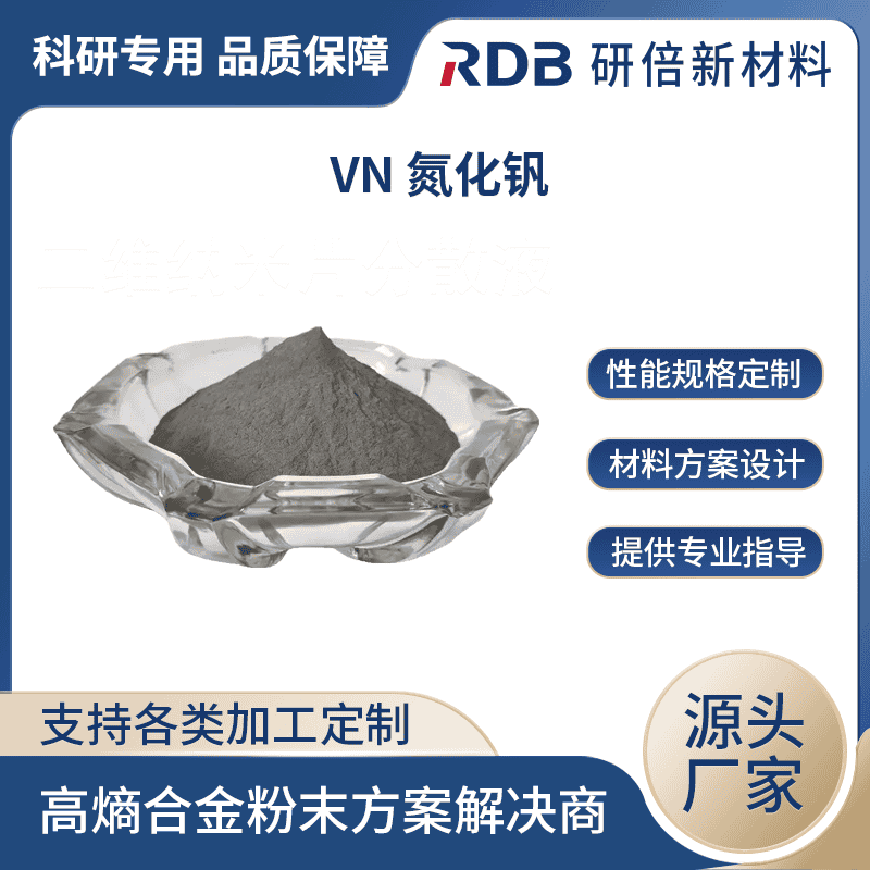 氮化钒在新能源领域也有着潜在的应用,例如在锌离子电池中,氮化钒可以用作正极材料,提供高电导率和离子电导率,支持电池的转换反应,并实现钒原子的**双电子氧化还原。