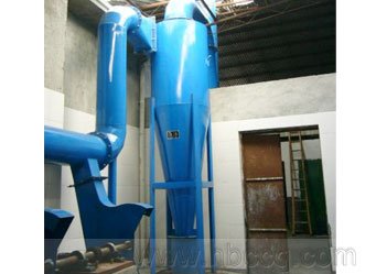 含尘气体从进口处切向进入后,气体在获得旋转运动的同时,气流分成上、下分开,形成双旋涡运动,粉尘在排气底部即双旋涡的分界处产生强烈的分离作用。较细较轻的尘粒由上部旋涡气流带往上部,在顶盖下面形成强烈旋转的灰环,产生尘粒的聚集,并被从特设的旁路分离室上部洞口引出,经旁路分离室下部螺旋槽,从除尘器外壁回风口切向引入除尘器筒体下部与内部气流汇合,粉尘被分离而落入灰斗。另一部分较粗重的粉尘颗粒则在下旋涡气流带动下,沿除尘器下段经由上旋涡气流的类似过程,将粉尘分离并进入灰斗。