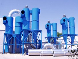 旋风除尘器用于工业生产以来,已有百余年历史。该类分离设备、机构简单、制造容易、造价和运行费用较底,对于捕集分离5~μm以上的较粗颗粒粉尘,净化效率很高所以在矿山、冶金、耐火材料、建筑材 料、煤 炭、化工及电力工业部门应用极为普遍。但旋风除尘器对于5~μm以下的较细颗粒粉尘(尤其是密度小的细颗粒粉尘)净化效率极低,所以旋风分离器通常用于粗颗粒粉尘的净化,或用于多级净化时的初步处理.