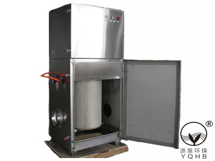 将机组放置独立的除尘间,配置相应的风管及吸尘罩与除尘器连接,插上电源,开启风机键,含尘空气从尘源经吸尘罩、风管、进风口进入箱体,因气流突然扩张,流速骤然降低,大粒经粉未在其自重的作用下从含尘空气中分离而沉降至盛灰抽屉中,其余尘粒由于滤芯的筛滤、碰撞、钩挂、静电等作用,被滞留于滤芯外壁,净化后的空气由风机经出口排出。本机组净化后的空气可直接排放室内循环使用,无通风热量(冷量)损失。