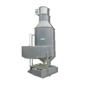 此后通过由花岗岩板组成的烟道,并以相当高的速度冲击水面,其中大部分尘粒由于重量加大或与水黏附后边留在水中,此阶段为冲击阶段,在此阶段产生后,水面因气体的运动而形成一抛物线形的水滴、水雾和泡沫区域,含尘气体在此区域内又进一步水滴水雾净化。此为淋水浴阶段。又因为进入设备时,烟气的温度一般不低于 80 度,(有的更高),筒体内在烟气的冲击下形成水雾,尘粒在改变方向,向上运动时,又被水雾进一步净化,此阶段为雾化除尘。