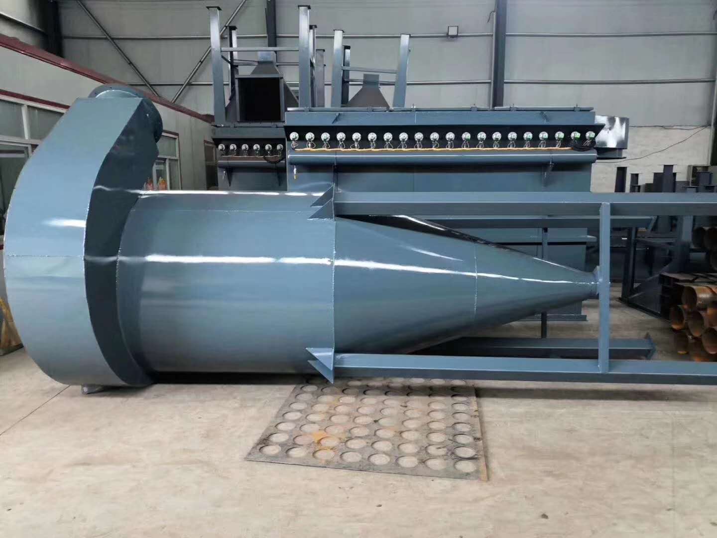 DMC单机布袋除尘设备喷吹管安装方法和作用,作为脉冲布袋除尘器喷吹管是必不可少的装置,单机布袋除尘设备喷吹管结构喷吹管前端为进气口,后端为固定端,喷吹管上布置有多个喷嘴,每个喷嘴上安装有一个喷吹短管,喷吹短管均为等长度短管,正对喷吹短管口安装有一组滤袋组,滤袋组顶面为花板;喷吹管分为喷吹前部和喷吹后部,喷吹管上所有喷嘴的直径之和为喷吹管内径的60~80%,喷吹前部的喷嘴直径比喷吹后部的喷嘴直接小1mm。它能够保证从喷吹管后部喷嘴群喷射出的压缩空气流同喷吹管前部喷嘴群喷吹出的压缩空气流在几乎相同的喷吹压力下,从而保证喷吹系统的佳清灰效果。