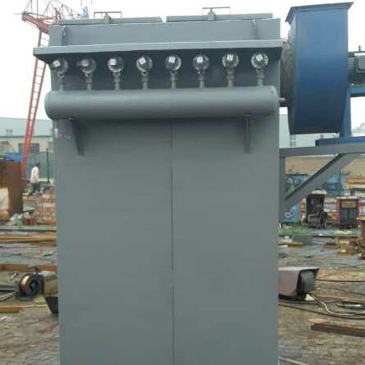 含有尘的气体由进气口进入灰斗、或通过敞开的法兰口进入滤袋室,含尘气体透过滤袋过滤为净气然后再进入净气室,再经净气排气口,由风机排走。粉尘积附在滤袋得外表面,且不断增加,使滤袋除尘器阻力不断的上升,为了使设备的阻力不超过,袋除尘器能继续工作,需定期清除滤袋上的粉尘。清灰是由程序控制器定时顺序起动脉冲阀,使包内压缩空气由喷吹孔眼喷出(称一次风)通过文氏管诱导数倍于一闪风的周围空气(称二次风)进入滤袋使滤袋在瞬间急剧膨胀,并伴随着气流的反向作用抖落粉尘,达到清灰的目的。