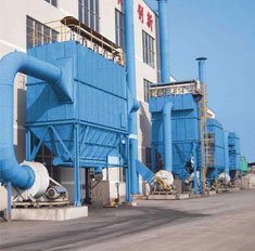 起预收尘的作用,进入灰斗的气流随后折而向上通过内部装有金属骨架的滤袋粉尘被捕集在滤袋的外表面,净化后的气体进入滤袋室上部清洁室,汇集到出风口排出,含尘气体通过滤袋净化的过程中,随着时间的增加而积附在滤袋上的粉尘越来越多,增加滤袋阻力,致使处理风量逐渐减少,为正常工作,要控制阻力在 范围内(140--170毫米水柱),一旦超过范围 对滤袋进行清灰,清灰时由脉冲控制仪顺序触发各控制阀开启脉冲阀,气包内的压缩空气由喷吹管各孔经文氏管喷射到各相应的滤袋内,滤袋瞬间急剧膨胀,使积附在滤袋表面的粉尘脱落,滤袋恢复初始状态。清下粉尘落入灰斗,经排灰系统排出机体。由此使积附在滤袋上的粉尘周期地脉冲喷吹清灰,使净化气体正常通过,保证除尘系统运行。