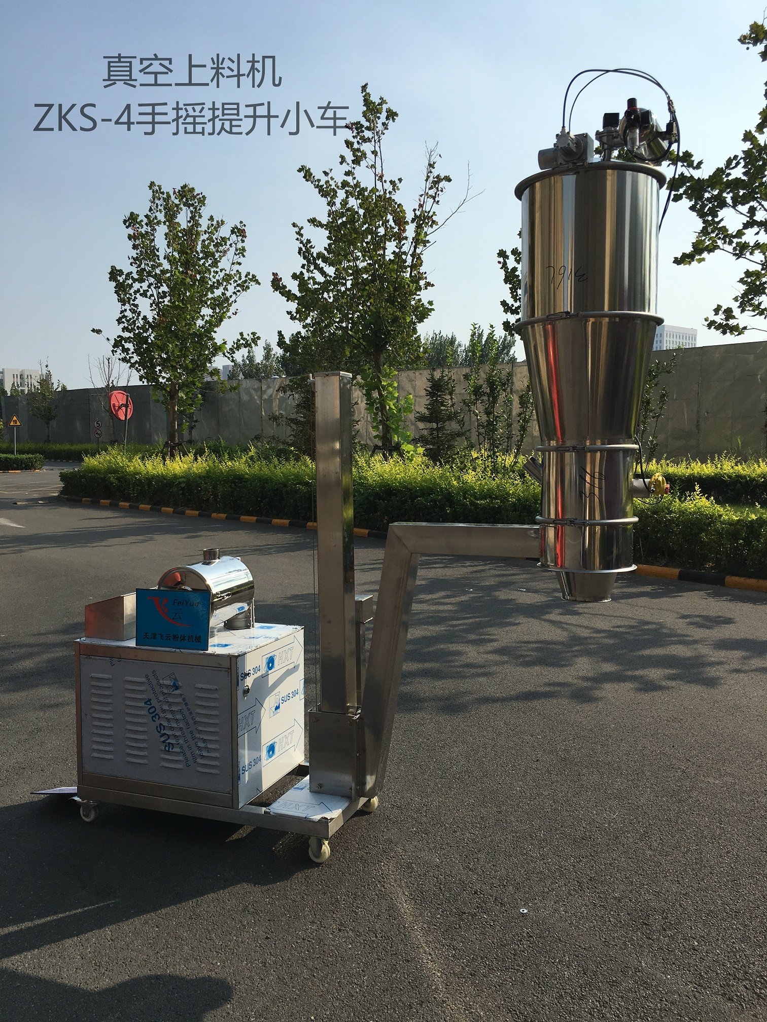 此设备由可移动小车、真空泵、粉尘回收桶、过滤器、吸料管和电器控制箱组成。所有的部件集中装在移动式机架上,外形美观,使用方便。