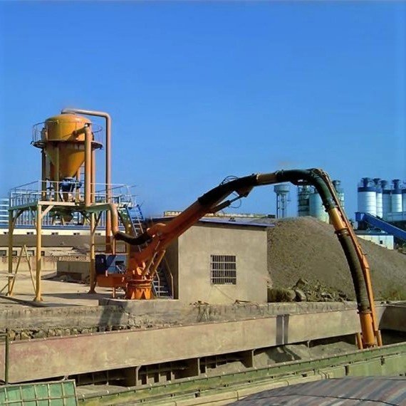 操作员通过操作手柄来控制电控柜和液压系统,使油缸和电机操控多节臂配合吸料管动作,以使吸嘴能到达货船料仓的各部位,回转支承可使吸臂向左向右各90°回转。