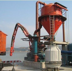 ZGXF散装物料负压抽吸机械输送式采用罗茨真空泵作为抽吸的动力,通过液压吸臂和吸嘴将水泥从散装货仓中吸至分离器,然后采用自然沉降、旋风分离、布袋过滤等一系列工艺,将水泥与空气分离,分离后的水泥经过卸料闸阀和过渡仓,进入气化斜槽,再通过斗提机将水泥输送至料仓顶, 终通过布置在料仓顶的气化斜槽将水泥输送至一个或多个料仓中,与物料分离后的清洁的空气从分离器上部经过排风管,进入罗茨真空泵,然后从罗茨真空泵出风口排至大气。