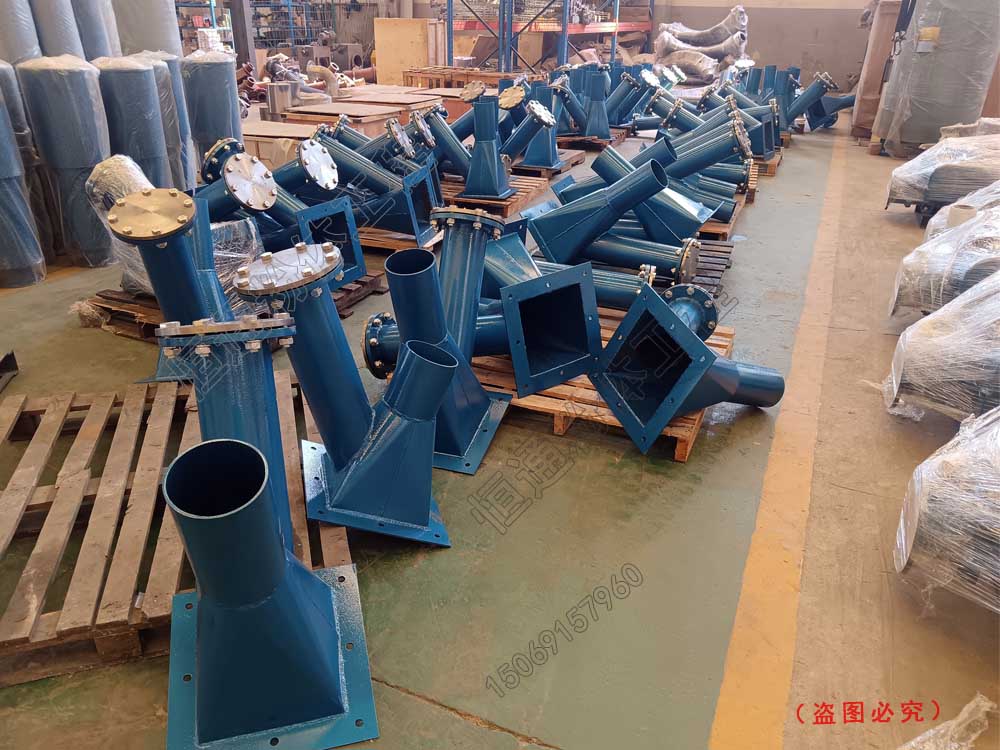 气力输送设备方变圆变径,也称为天圆地方或天方地圆,用于除尘器底部方口端与供料器圆口端的设备连接,根据现场安装空间可进行尺寸定制,此款方口端为300,圆口端为150,恒通粉体根据客户需求定制各种类型变径,且有不锈钢、碳钢等材质。