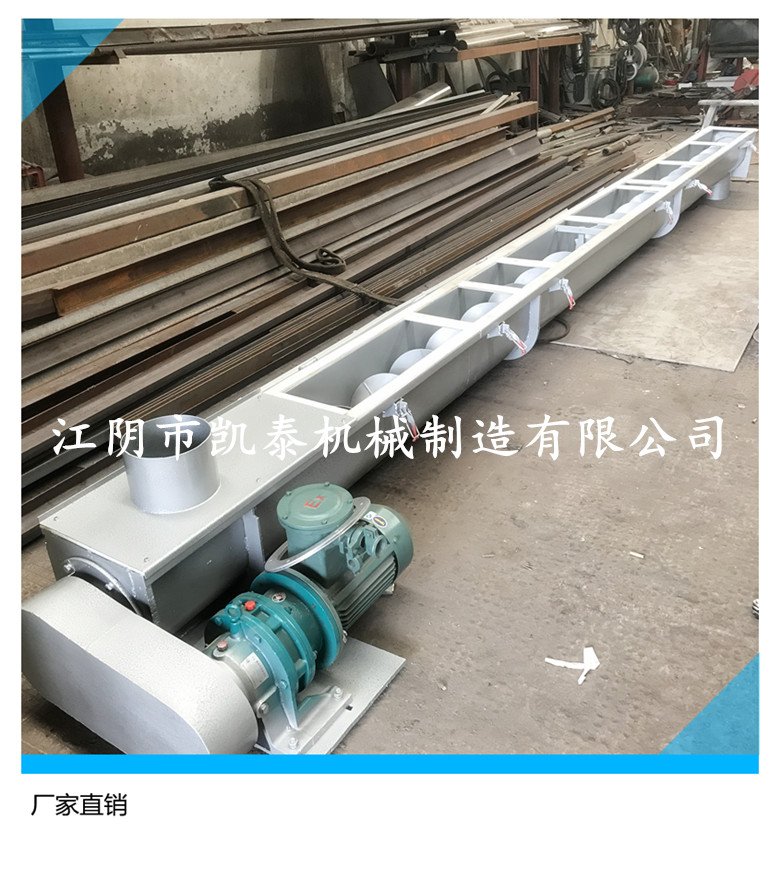 螺旋输送机是利用旋转的螺旋叶片将物料推移而进行螺旋输送机输送,使物料不与螺旋输送机叶片一起旋转的力是物料自身重量和螺旋输送机机壳对物料的摩擦阻力。螺旋输送机旋转轴上焊的螺旋叶片,叶片的面型根据输送物料的不同有实体面型、带式面型、叶片面型等型式。螺旋输送机的螺旋轴在物料运动方向的终端有止推轴承以随物料给螺旋的轴向反力,在机长较长时,应加中间吊挂轴承。(我厂是生产厂家,可按客户需求定制)