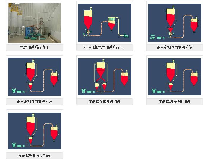动压密相气力输送 | 压力发送罐 | 负压气力输送 | 闭环气力输送 | 中压输送 |