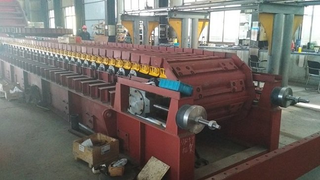 3.7 要经常调节拉紧装置,使链板机链条保持适当紧度,调节时两边的螺杆均匀移动,调节后螺母要锁紧。