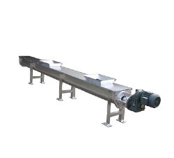 无轴螺旋输送机是由无轴螺旋、U型螺旋槽、盖板、衬板、进/出料口、排放口和驱动装置组成,物料由进料口输入,经无轴螺旋推动后,由出料口输出。驱动装置置于螺旋输送机一端,采用电机减速机和螺旋驱动轴直连形式,不需要联轴器,拆卸、维修方便,驱动轴能承受弯距和轴向挤压力同时作用的负荷。驱动电机适用于380V、3相、50Hz,它的防护等级为IP55(户外型),绝缘等级为F级。U型螺旋输送槽内衬里设置成半圆状,其圆弧设置成与无轴螺旋体半径相吻合以减少过量间隙来增加输送效果;高的尼龙材料制作,便于安装及更换,使用寿命长。U型螺旋槽采用不锈钢板卷制而成,除进料口敞开外,其余部份沿螺旋槽加平盖封闭,整个传输过程在一个密封的槽中进行,降低噪声,减少了异味的排出;在U型槽的底部设有排放口,并配套排水球阀。
