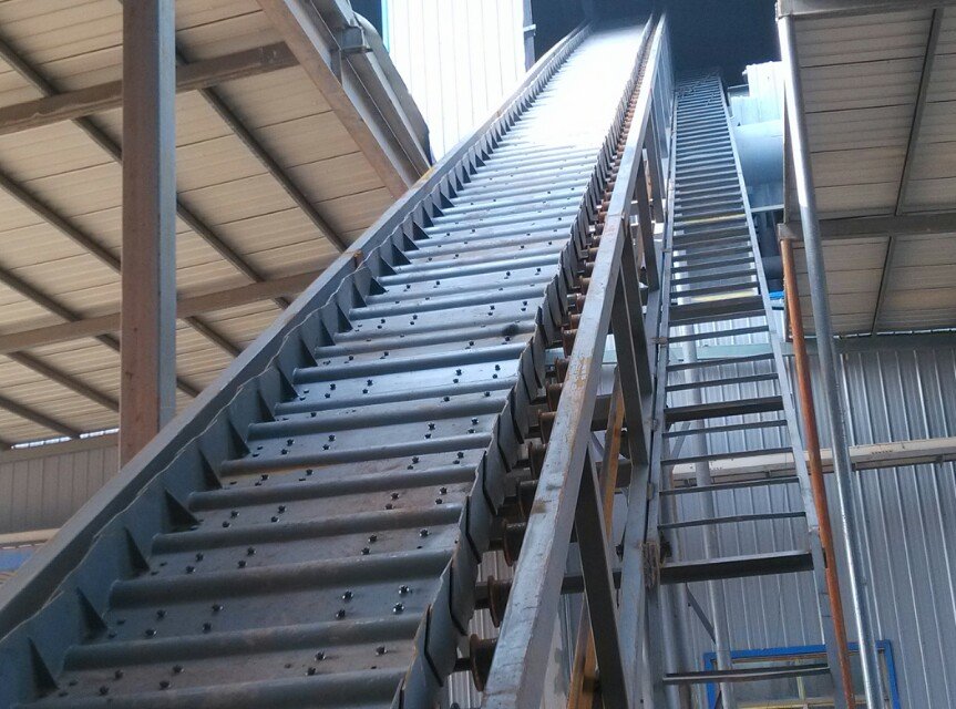 链板机由头部机架、头部护罩、主动链轮组、输料装置、中部机架、尾部机架、改向链轮组,链板托轮组和驱动装置组成。