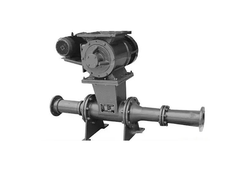 DSB型连续泵由均匀给料器和送料器两部分组成。给料器完成均衡给料,并具有锁气功能,它将物料由常压压入低正压系统中;送料器利用独特设计的喷嘴,将物料及输送气体均匀混合,并将物料送入到输送管内,利用气力压差使物料沿管道送到受料目的地。整体结构简单,只有给料器为转动部件,因而运行极可靠。