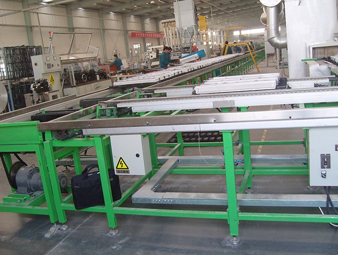 倍速链输送机,其输送原理是运用倍速链条的增速功能,使其上承托货物的工装板快速运行,通过阻挡器停止于相应的操作位置;或通过相应指令来完成积放动作及移行、转位、专线等功能。倍速链输送机分为2.5倍速链输送机和3倍速链输送机,广泛应用机电产品组装、电子电器组装、机械组装等行业生产线。