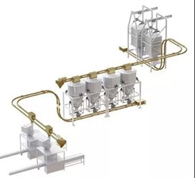 管索输送机(又称盘式输送机和刮片输送机)盘片安装在不锈钢钢索上在光滑的管道内将物料往前推。盘片和钢索由一个带电机的主动轮驱动,在另一端有一个张紧轮张紧。这种设计允许单点或多点进料和出料,输送管道可以水平,垂直或任何角度,只需要在墙面或天花板开一个小孔即可通过。组件模块化,所以入口和出口可以增加、减少或改变位置,并且输送管路可以随着需要的改变而加长、缩短或重新布置。