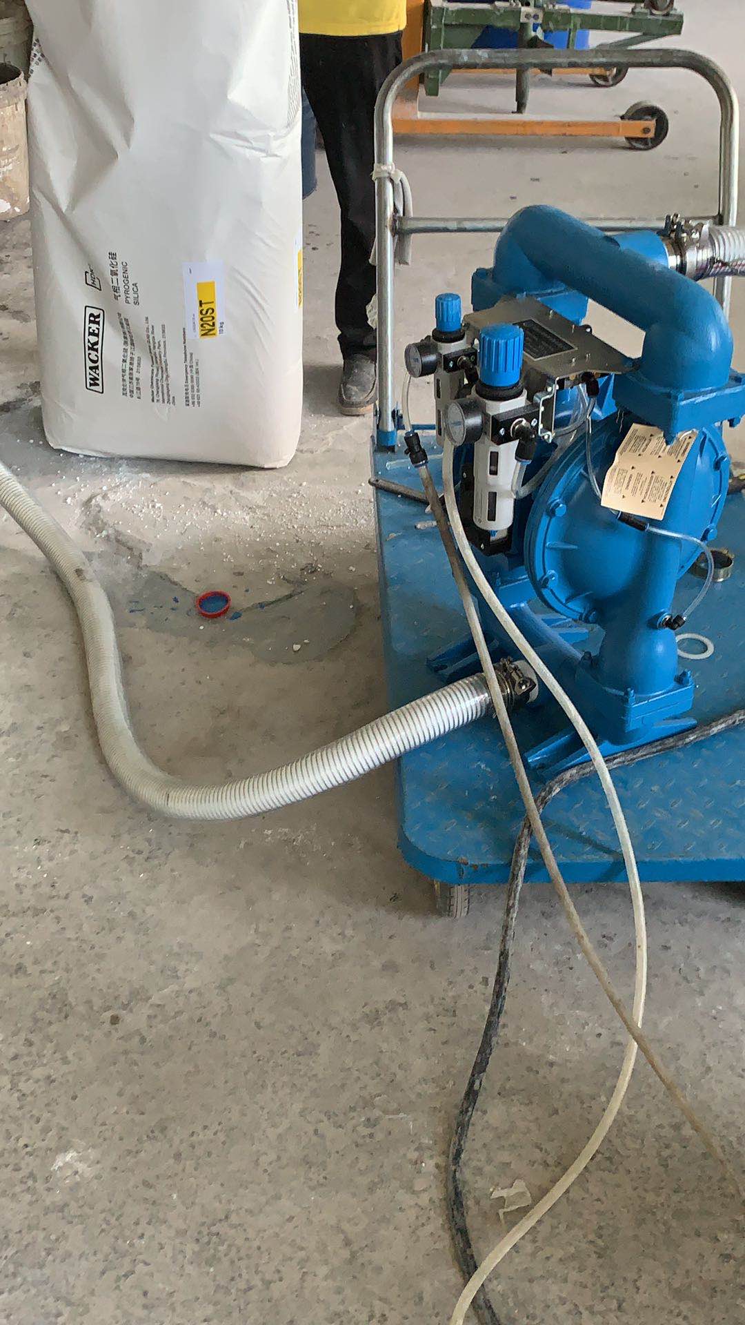 粉体输送专用泵是用来输送固体粉末状物料的,与液体输送的隔膜泵还是有较大的区别。固体粉末状物料只有在保持半流动状态下,才不至于在泵腔体内被压成近似固体的块状导致输送失败和损坏泵。因此,用于输送液体的普通双隔膜泵是无法正常用于固体干粉输送的。所以粉泵系统需增加一组特殊的阀,在每个泵循环中,根据一定的时间顺序,将压缩空气(或其他的惰性气体)同步引入泵的腔体,使在粉体的泵送过程中保持流动状态。