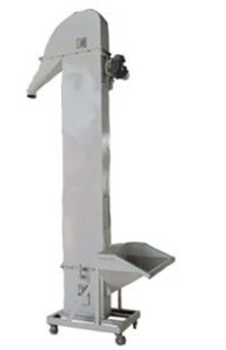 料斗把物料从下面的储藏中舀起,随着输送带或链提升到顶部,绕过顶轮后向下翻转,斗式提升机将物料倾入接受槽内。带传动的斗式提升机的传动带一般采用橡胶带,装在下或上面的传动滚筒和上下面的改向滚筒上。链传动的斗式提升机一般装有两条平行的传动链,上或下面有一对传动链轮,下或上面是一对改向链轮。斗式提升机一般都装有机壳,以防止斗式提升机中粉尘飞扬。