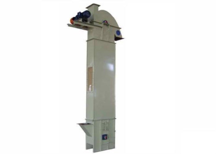 料斗把物料从下面的储藏中舀起,随着输送带或链提升到顶部,绕过顶轮后向下翻转,