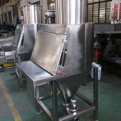 b)小袋卸投料站:该设备特别适用于小批量人工投料,且物料较易结块的工况;