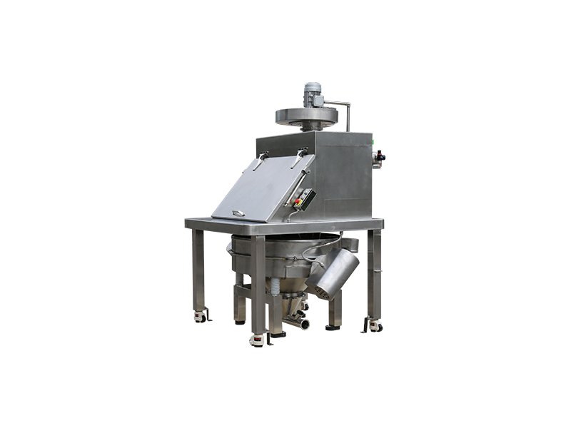 无尘投料站适用于制药、化工、食品、电池材料等行业中、小袋物料的拆包、投放、筛分和卸料。拆包时由于集尘风机的作用可以避免物料粉尘到处飞扬。当物料解袋并倒入下一道工序时,只需人工直接拆包投入到该系统,物料通过振动筛(安全筛网)可将大块物料和异物拦截,从而保证符合要求的颗粒排出。无尘投料站由投料平台、卸料仓、除尘系统、振动筛等部件组成。