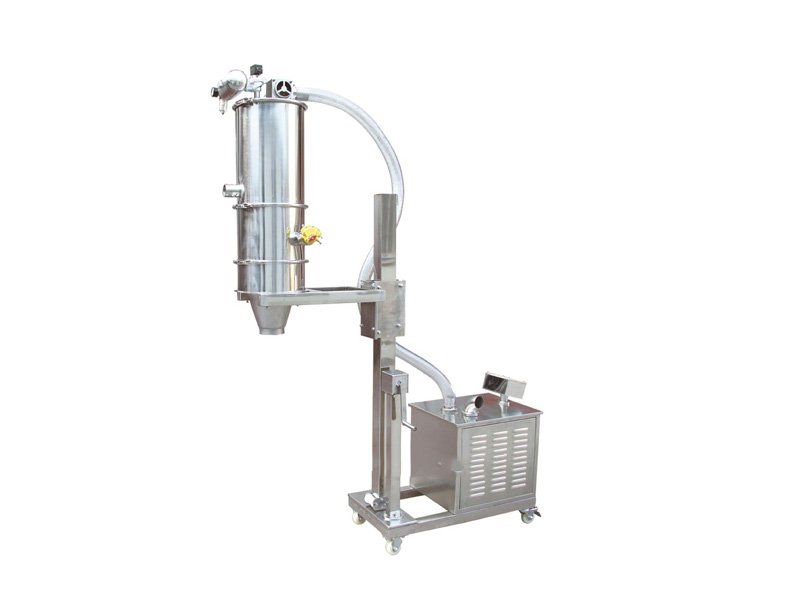 真空加料机由真空泵(无油、无水),真空料斗,过滤器(由聚酯覆膜过滤器、pe过滤器、316L不锈钢过滤器或钛金属过滤器多种选择,压缩空气反吹装置,不锈钢吸料咀,输送软管等组成,整套系统设计合理,制造精美。