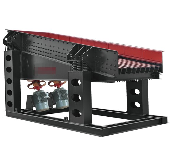 振动给料机在石料破碎生产线中,可以均匀连续地为破碎机械给料,也可对石料进行初次筛分,粉状和小物料自动从缝隙排出。
