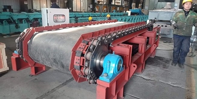 运行部件是散料给料机的关键部件。由套筒滚子链、输送带、槽板、连接件等组成。