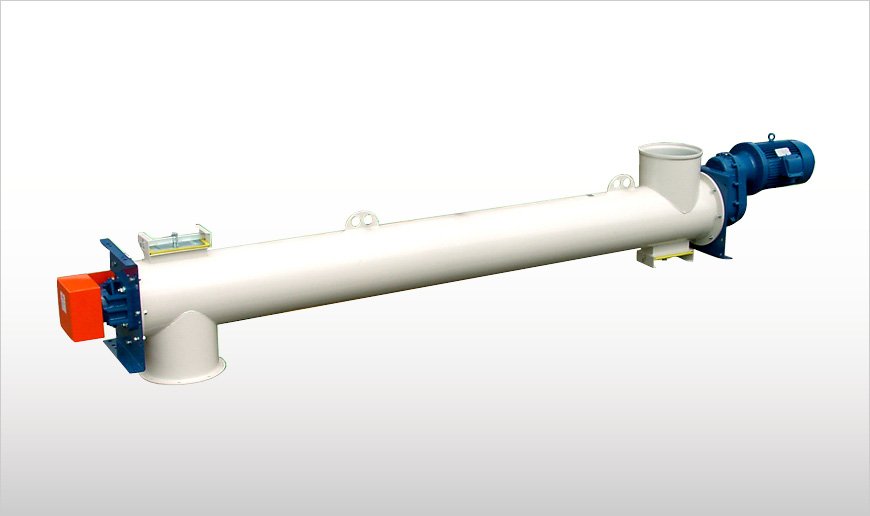 TP和TE型螺旋输送机主要用于中等载重和超重型载重情况。其由碳钢制成,经过了适用的表面处理。由下列部分组成:装配有至少一个进/出料口的管式槽体、法兰连接在槽端部的两个端板、焊接在中心管(两端各有连接衬套(TP)或法兰联轴器(TE))上的螺旋叶片、带可调轴密封单元的两个末端轴承组件、数量由螺旋输送机总体长度决定的中间吊挂轴承。此外,TP/TE管式螺旋输送机还装配有齿轮减速箱和电机,而且在大多数情况下还带有附加的电力输送装置,满足不同的客户需求。