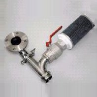 一般来说,我们只需在漏斗底部的出料口与输送管的连接处附近,安装一个肘形管、一个空气过滤装置、一个控制球阀(左下图),用于辅助下料,另一端与真空输送设备的吸料软管相连,即可完成下吸料的整个工艺过程。