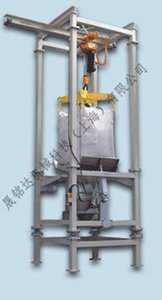 1,将电葫芦降下,将包装袋的袋绳挂在钢性支架上。