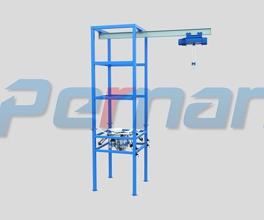 KB-T吨袋拆包装置是由起吊装置吊装吨袋到拆袋机的机架上,开启夹袋装置,将吨袋下部出料口放置于夹袋装置内,关闭夹袋装置,解开吨袋绳索,开始作业。下料过程中配合拍打助流,提高下料速度,确保物料无残留。该装置能有效保护生产环境,减轻劳动者的工作强度,同时还提高生产效率,解决了大袋在开袋工作中因吸潮导致结块、搭桥不易出料的现象.。